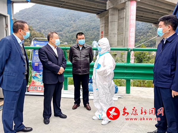 市長武文罡(左二)在安嵐高速嵐皋收費(fèi)站檢查疫情防控措施落實(shí)情況