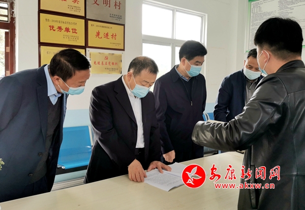 市長武文罡(左二)在嵐皋縣民主鎮(zhèn)新喜村村委會(huì)檢查脫貧攻堅(jiān)成果鞏固情況