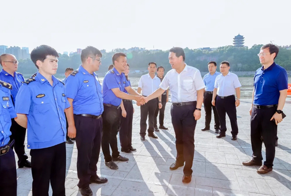 在安康龍舟文化園,趙俊民督導(dǎo)漢江禁洗工作,看望漢江中心城區(qū)段環(huán)境保護(hù)工作人員,并送去防暑降溫慰問品,叮囑他們在開展河道洗滌勸導(dǎo)活動的同時,注意防暑降溫、保重身體。