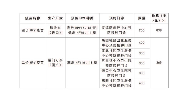 (4)本次僅有二價(jià)、四價(jià)HPV疫苗,數(shù)量有限,生產(chǎn)企業(yè)后續(xù)將會(huì)逐批供應(yīng),請(qǐng)耐心等待;可關(guān)注【漢濱疾控】微信公眾號(hào),及時(shí)了解預(yù)約消息。