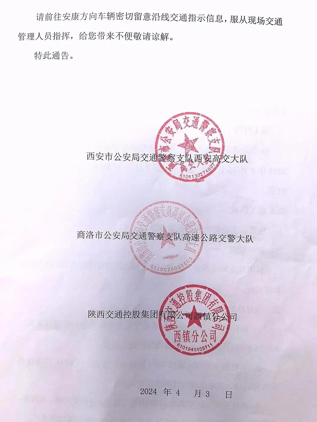 4月15日12時起,包茂高速公路太乙宮至營盤段交通管制