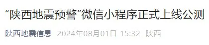 “陜西地震預(yù)警”微信小程序正式上線(xiàn)公測(cè)