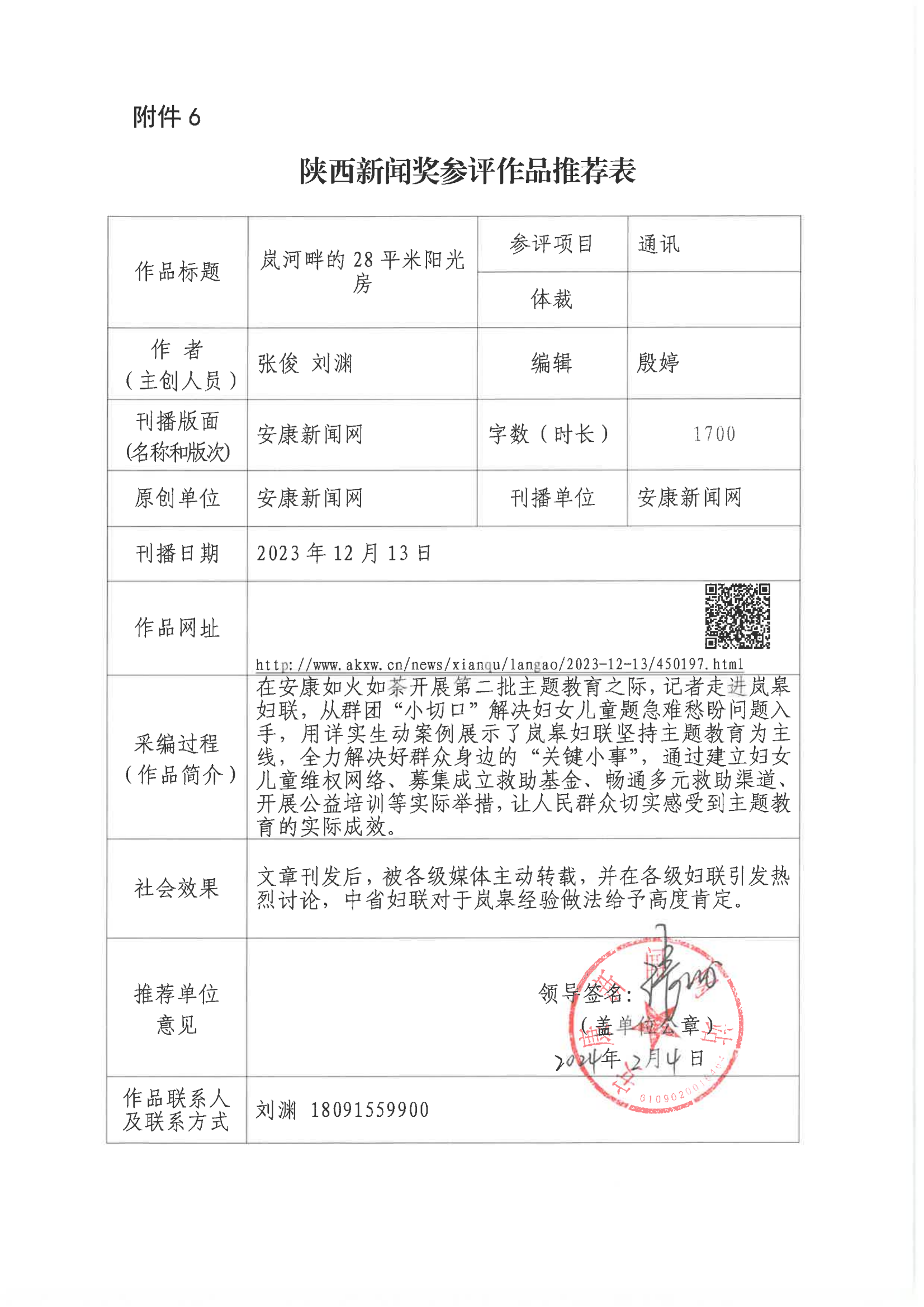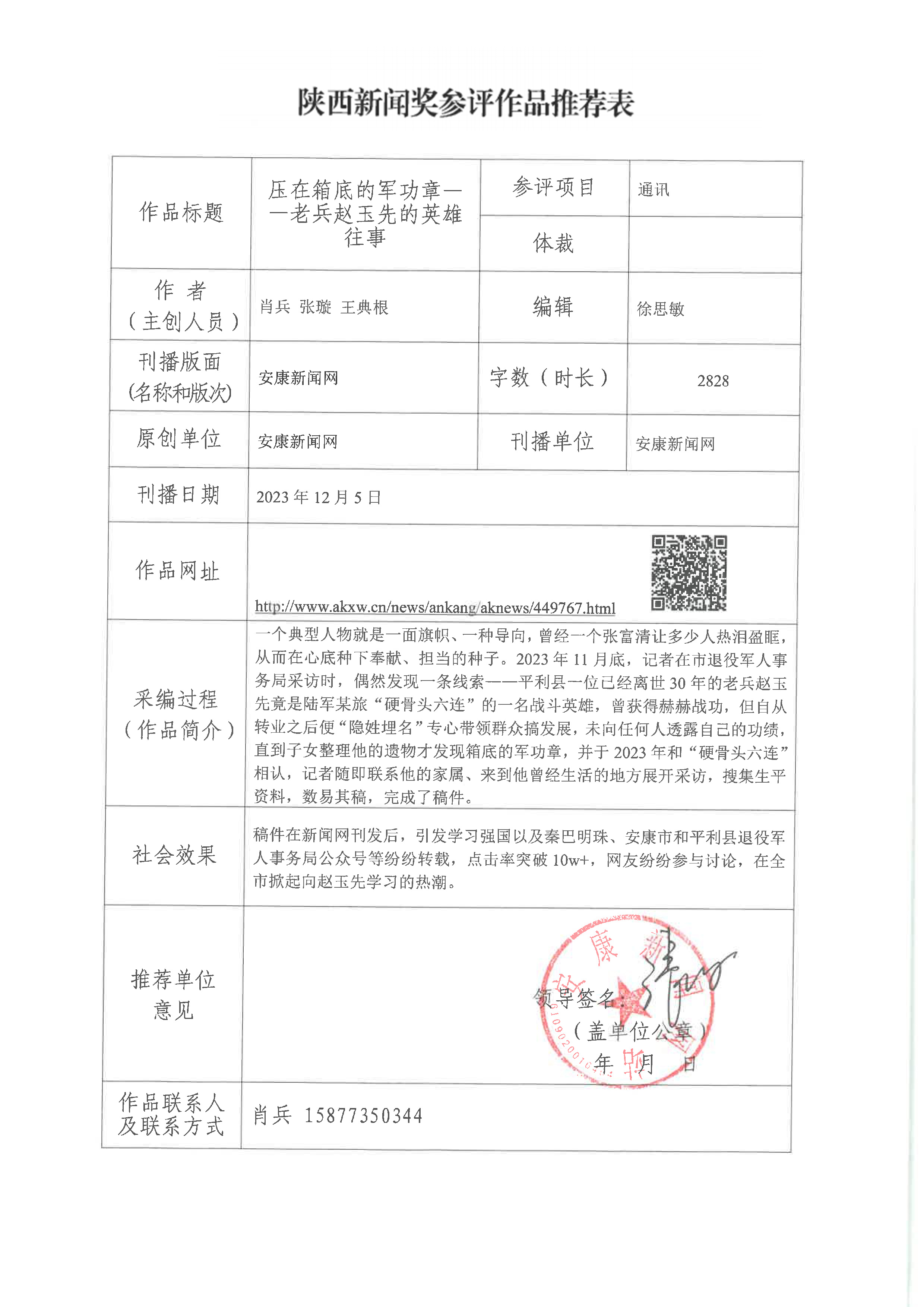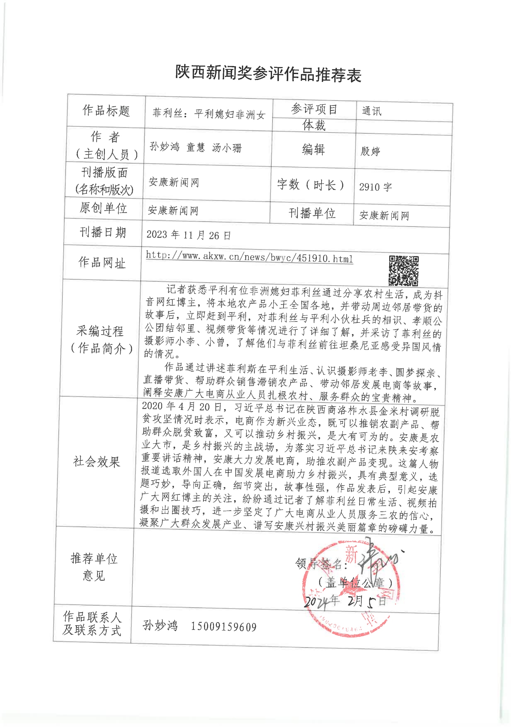 經(jīng)過(guò)1月30日編委會(huì)推薦、社黨委研究決定,擬推薦以下4件新聞作品參評(píng)2023年度“陜西新聞獎(jiǎng)”。公示時(shí)間從2024年3月6日至2024年3月12日,公示期為5個(gè)工作日。如有不同意見,請(qǐng)向安康日?qǐng)?bào)社機(jī)關(guān)紀(jì)委、新聞管理部反映。RAj安康新聞網(wǎng)