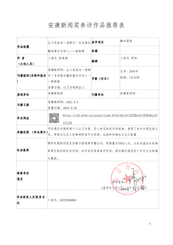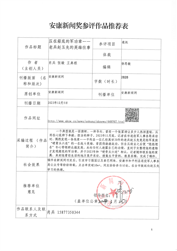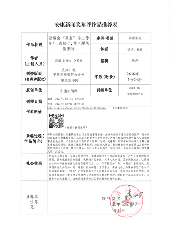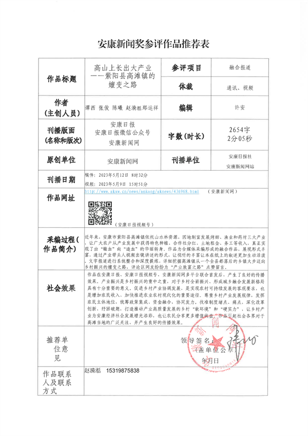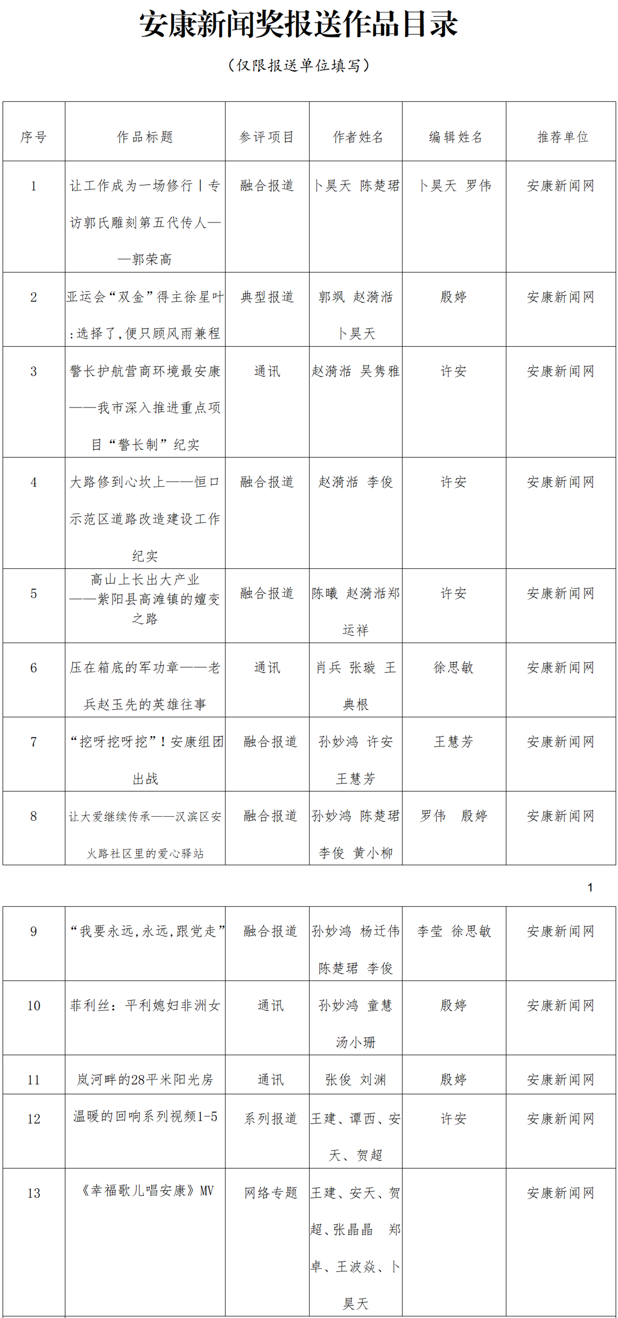 經過編委會推薦、社黨委研究決定,擬推薦以下13件新聞作品參評2023年度“安康新聞獎”。公示時間從2024年3月25日至2024年3月29日,公示期為5個工作日。如有不同意見,請向安康日報社機關紀委、新聞管理部反映。nyB安康新聞網