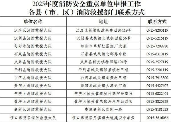 為進一步規(guī)范全市消防安全重點單位的監(jiān)督管理工作,推動單位落實消防安全主體責任,根據(jù)《中華人民共和國消防法》《陜西省消防條例》《機關、團體、企業(yè)、事業(yè)單位消防安全管理規(guī)定》《陜西省消防安全重點單位界定標準》等法律法規(guī)的有關規(guī)定,按照“應列盡列”的標準,凡符合下列界定標準的單位,應主動向當?shù)叵谰仍块T申報,經(jīng)審查核定后,確定為消防安全重點單位,現(xiàn)將申報2025年度消防安全重點單位工作公告如下: