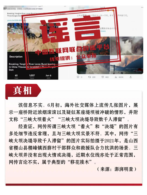 移花接木,憑空捏造事實(shí)博關(guān)注?v觀6月網(wǎng)絡(luò)謠言,還需警惕的是,個(gè)別網(wǎng)民為博取關(guān)注,不惜移花接木、憑空捏造不實(shí)信息。如有網(wǎng)民惡意造謠“山西一女幼師給幼兒喂避孕藥”“上海仁濟(jì)醫(yī)院(東院)存在醫(yī)生嫖娼、組織賣淫”,經(jīng)調(diào)查,這些人造謠的目的純屬是為了吸引眼球、博取關(guān)注,均已被警方依法嚴(yán)肅查處;海外社交媒體上流傳所謂“三峽大壩‘著火’‘決堤’”,也是以移花接木伎倆,往我國家標(biāo)志性工程身上“潑臟水”;而網(wǎng)傳“上海市司法局?jǐn)M錄用的38名公務(wù)員大部分是留學(xué)生”,則是對今年上海公務(wù)員招錄工作的歪曲混淆、以偏概全,其真實(shí)目的是吸引眼球、獲取流量,謀取私利。