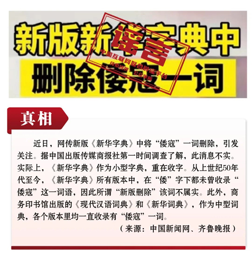 謠言6:新版《新華字典》刪除了“倭寇”一詞?