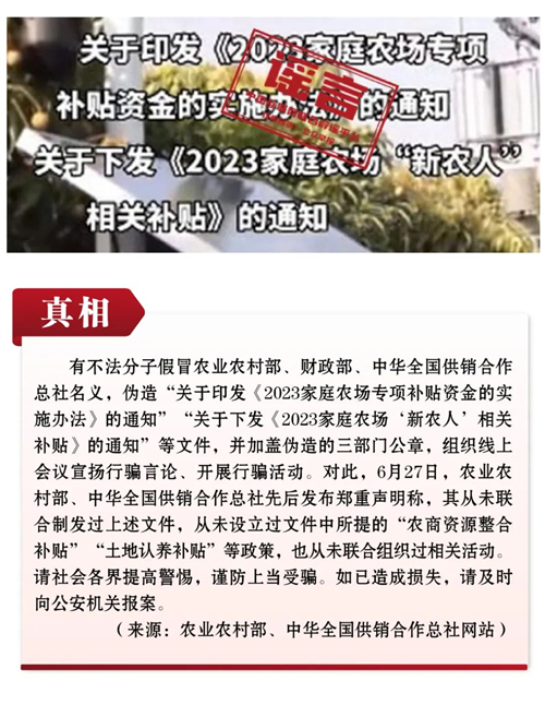 謠言1:三部門聯(lián)合發(fā)文將發(fā)放家庭農(nóng)場等專項(xiàng)涉農(nóng)補(bǔ)貼?