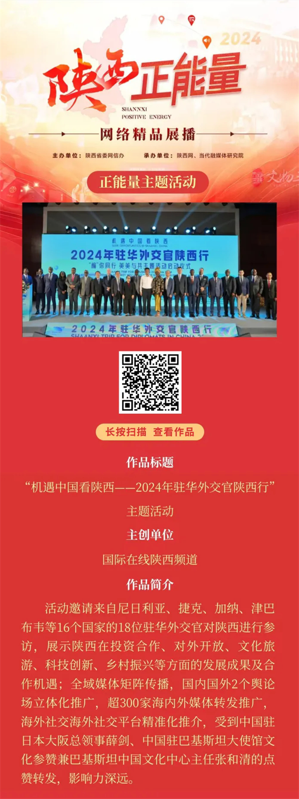 2024陜西正能量網(wǎng)絡(luò)精品展播丨正能量主題活動:機(jī)遇中國看陜西——2024年駐華外交官陜西行主題活動