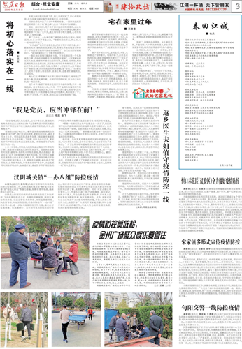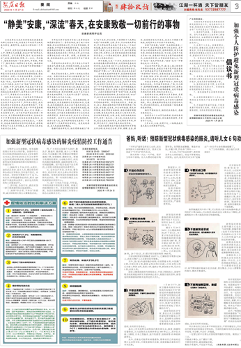 積極搭建民生服務(wù)平臺,幫助群眾解決實際困難。2020年,本報堅持正面宣傳,開設(shè)“眾志成城抗擊疫情”欄目,深入宣傳、充分報道黨中央重大決策部署、聯(lián)防聯(lián)控措施、防控疫情的成效,使全市群眾在堅定信心的同時,興起了群防群控?zé)岢。充分發(fā)揮服務(wù)群眾、引導(dǎo)群眾功能,先后開設(shè)“2020春我的宅家筆記”等欄目刊發(fā)稿件30多篇,引導(dǎo)市民不盲目跟風(fēng)不過度防護,有效及時疏導(dǎo)公眾焦慮恐慌等情緒,凸顯了主流媒體的傳播力影響力和公信力。