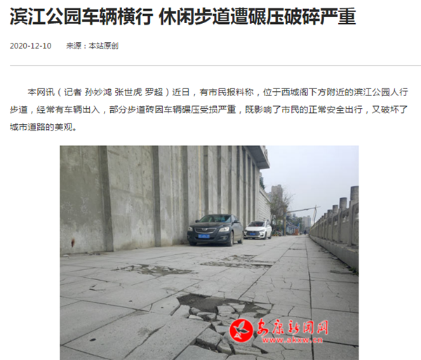 安康新聞網(wǎng)積極履行媒體輿論監(jiān)督職能,開設(shè)有“曝光臺(tái)”欄目,主要刊發(fā)市紀(jì)委通報(bào)的典型問題。2020年,聚焦民生問題,刊發(fā)了《出門停車難,回家車位貴——安康中心城區(qū)物業(yè)小區(qū)停車問題調(diào)查》《“限塑令”下,小小塑料袋緣何依然“橫行”?》《健康就餐:我市推行“分餐制”進(jìn)展調(diào)查》《電動(dòng)車充電,何時(shí)才能不“飛線”?》等一批原創(chuàng)新聞,反映群眾呼聲,積極推進(jìn)問題解決,體現(xiàn)地方黨媒的責(zé)任與擔(dān)當(dāng)。