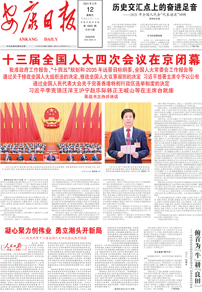 十三屆全國人大四次會議在京閉幕 (2021年3月12日1版)