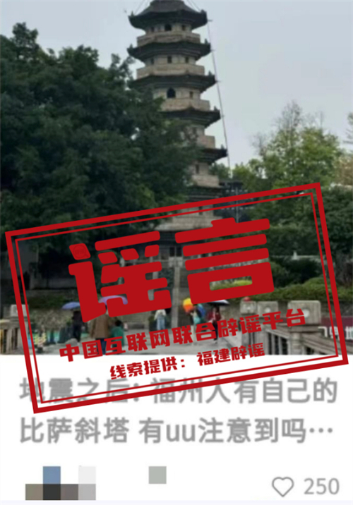 真相:近期,臺灣多次發(fā)生地震,福建福州也有震感,網(wǎng)絡(luò)平臺隨之出現(xiàn)“地震之后福州人有自己的比薩斜塔”“地震后烏塔似乎變斜了”等信息。烏塔位于福州市內(nèi)烏石山東麓,是福州的標(biāo)志性建筑。烏塔又名“崇妙保圣堅牢塔”,原名“無垢凈光塔”,唐貞元15年(公元799年)始建,唐末毀。五代晉天福六年(公元941年)重建,更名“堅牢塔”,距今已有1083年。