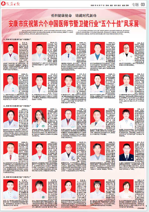 (2023年8月17日安康日?qǐng)?bào)03版《安康市第六個(gè)中國(guó)醫(yī)師節(jié)暨衛(wèi)健行業(yè)“五個(gè)十佳”風(fēng)采展》)