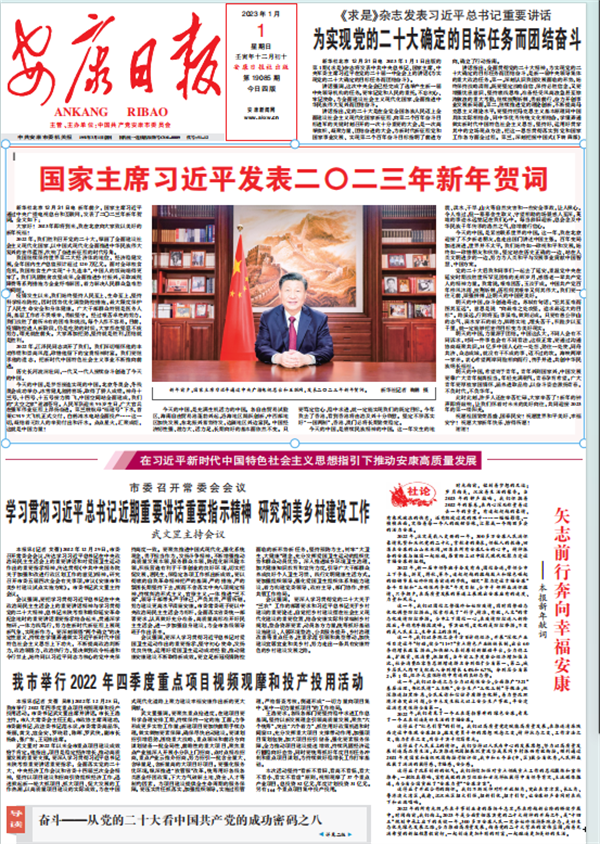 (2023年1月1日安康日?qǐng)?bào)01版社論《矢志前行奔向幸福安康——新年獻(xiàn)詞》)