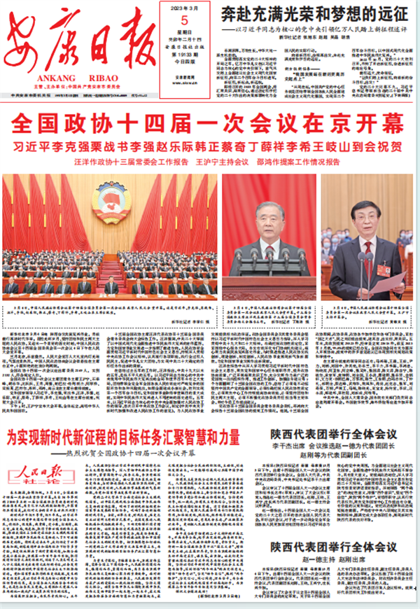 (2023年3月5日安康日?qǐng)?bào)01版《全國(guó)政協(xié)十四屆一次會(huì)議在京開幕》)