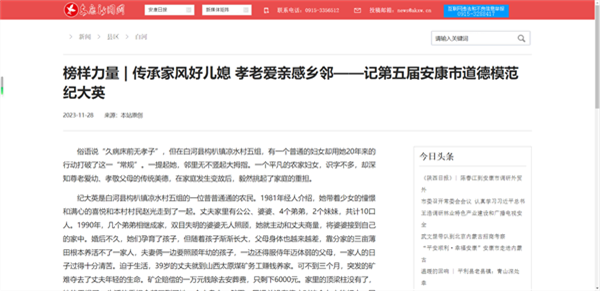 堅(jiān)持以人為本報(bào)道理念,充分凸顯人文精神。報(bào)道《榜樣力量|傳承家風(fēng)好兒媳孝老愛親感鄉(xiāng)鄰——記第五屆安康市道德模范紀(jì)大英》《我市3人上榜!2023年第四季度“陜西好人榜”發(fā)布》《王淳鋒:腳下沾著泥土心里揣著群眾》《趙光鮮:立足崗位謀發(fā)展巾幗創(chuàng)業(yè)勇?lián)?dāng)》等,啟迪思想,溫潤心靈,詮釋真善美。