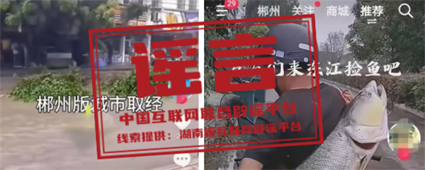 7月28日,某短視頻平臺出現(xiàn)兩段視頻,一段是城市街道被洪水淹沒并配文“郴州版城市取經(jīng)”的視頻;另一段是暴雨過后在積水中抓魚并配文“友友們來東江撿魚吧”的視頻。經(jīng)湖南郴州網(wǎng)信部門核實(shí),相關(guān)視頻系網(wǎng)民惡意拼湊,郴州并未出現(xiàn)視頻所述情況。網(wǎng)信部門已將謠言線索移交公安部門依法處置。