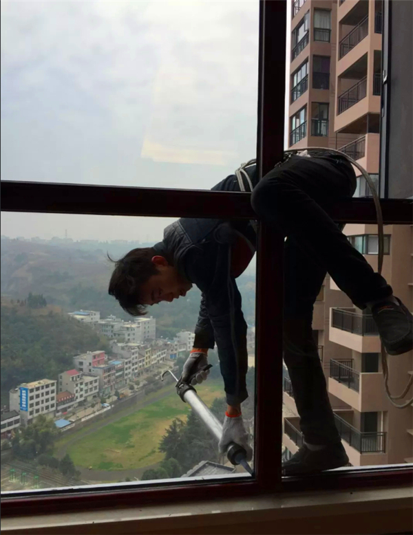 作品簡介:蜘蛛人 2017年12月27日,一個寒冷的冬季里,窗戶玻璃安裝工人身懸七十多米高的窗戶外面封膠,體現(xiàn)了勞動者的勤勞、智慧與膽量的獨特魅力!fAU安康新聞網(wǎng)
