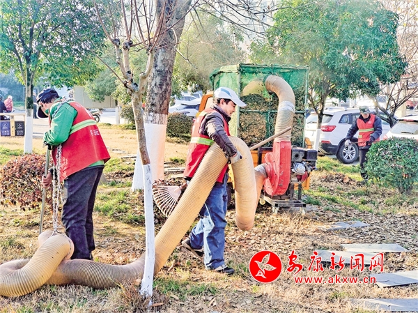 為迎接新年,2024年12月30日下午,漢濱環(huán)衛(wèi)工人在街心公園清理落葉雜草,扮靚城市。尚玉寶 攝Fwj安康新聞網(wǎng)