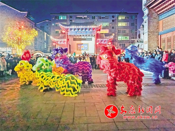 水西門(mén)小廣場(chǎng)上的燒火獅表演引得觀眾連連贊嘆。趙華斌 攝