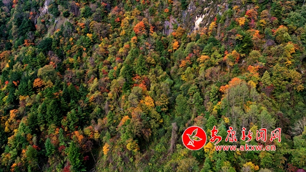 金秋十月,清風送爽。寧陜縣境內(nèi)的平河梁自然保護區(qū)層林盡染,讓人不禁感謝大自然的饋禮,陶醉于這美景之中,一眼望去滿眼色彩斑斕,秋日山色美不勝收。(楊寧 攝)5z7安康新聞網(wǎng)