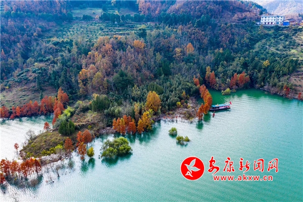 深秋時節(jié),蔚藍(lán)的天空一塵不染,晶瑩明澈,朵朵云霞映照在碧波如洗的瀛湖水間,分外絢麗。nmc安康新聞網(wǎng)