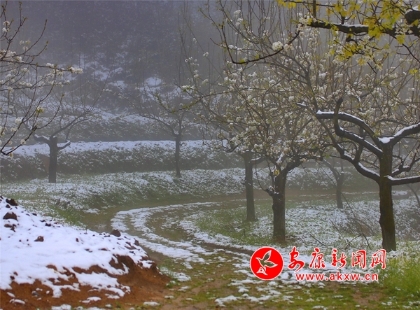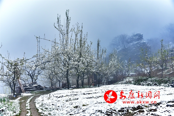 日前,一場洋洋灑灑的春雪,讓平利縣城關(guān)鎮(zhèn)龍頭村太平寨展現(xiàn)出春雪壓梨花的美景。據(jù)悉,太平寨有梨樹十余畝,與絞股藍(lán)栽植套種,年產(chǎn)酥梨萬余斤。(王韜 攝)wsA安康新聞網(wǎng)