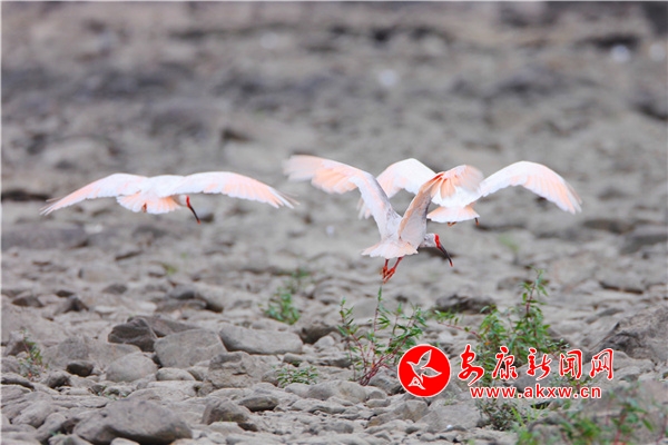 連日來(lái),石泉縣城漢江邊的一處處河水淺灘,迎來(lái)大量朱鹮、白鷺、蒼鷺等水鳥覓食,它們時(shí)而展翅翱翔,時(shí)而嬉水歡舞,享受大自然綠色生態(tài)帶來(lái)的愜意。(圖文/許兵)uYa安康新聞網(wǎng)