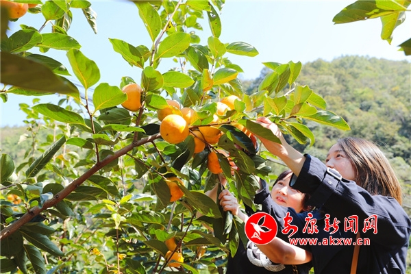 10月14日,秋高氣爽,走進(jìn)石泉縣城關(guān)鎮(zhèn)絲銀壩村九組脆甜柿子種植基地,只見(jiàn)一個(gè)個(gè)色澤紅艷的柿子掛滿枝頭,十分誘人,吸引了不少游客前來(lái)采摘品嘗。(通訊員 許兵)yUZ安康新聞網(wǎng)