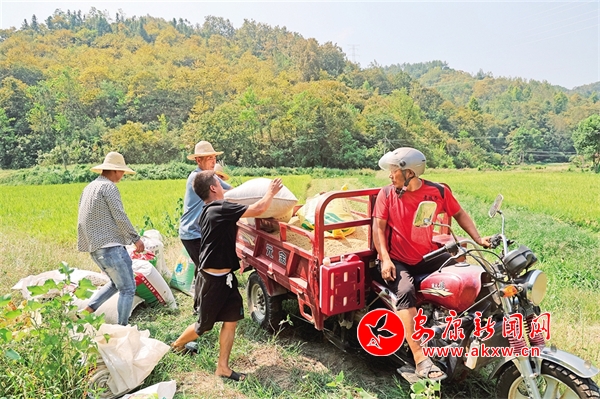 連日來,高溫天氣持續(xù),漢濱區(qū)吉河鎮(zhèn)吉河壩社區(qū)大片水稻已經(jīng)成熟,農(nóng)戶搶抓晴好天氣開鐮收割,一派繁忙的豐收景象。該區(qū)40萬畝秋糧作物開鐮收獲以來,農(nóng)業(yè)農(nóng)村部門先后組織調(diào)運2000余臺(套)收割、脫粒等農(nóng)機(jī)參與秋收工作。李勝福 攝