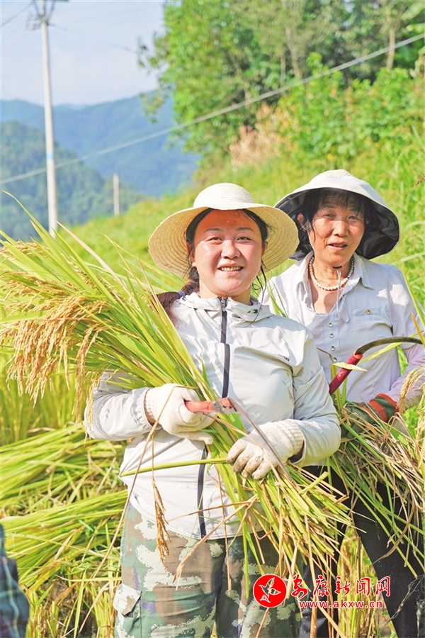 嵐皋縣南宮山鎮(zhèn)桂花村水稻喜迎豐收,今年預(yù)計稻谷產(chǎn)量達(dá)到45萬多公斤,帶動當(dāng)?shù)卮迕駪艟暝鍪?000元。柴可庭 攝