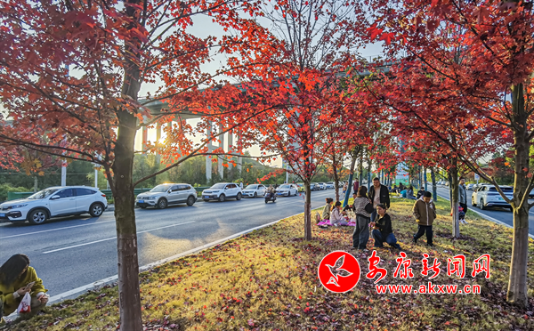 安康富強飛機場大道的紅葉進入紅葉最佳觀賞期,每天有數(shù)百人在這里觀賞,拍照和打卡,留下紅葉的美好瞬間。(圖文:陳德模)