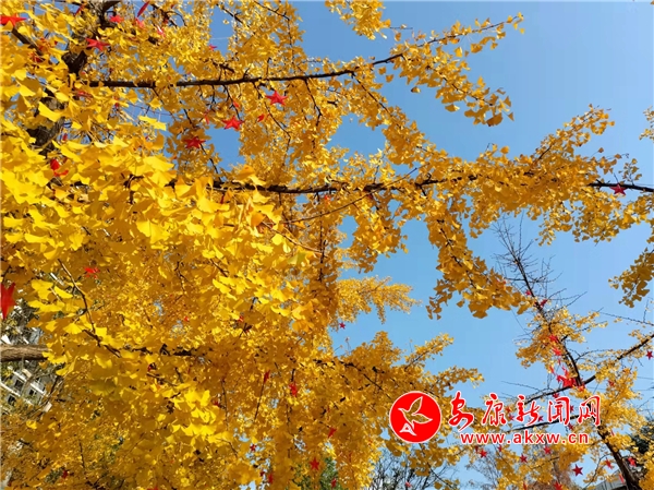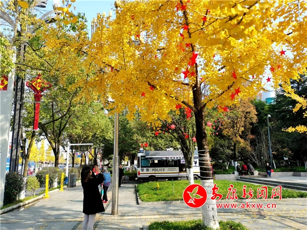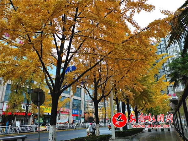 冬日暖陽(yáng),城區(qū)環(huán)城南路銀杏樹披上金色的盛裝。(陳榮斌 攝 )