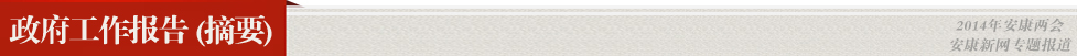 市長徐啟方所作《政府工作報告》(摘要) 2月26日,在安康市第三屆人民代表大會第五次會議上,市長徐啟方所作的《政府工作報告》對2013年經(jīng)濟社會發(fā)展進行了全面回顧,對2014年的工作進行了安排部署,這對我市今后的發(fā)展具有十分重要的意義。安康新網(wǎng)特摘錄其中要點,以利全市上下學習領(lǐng)會,統(tǒng)一認識,認真貫徹落實,加快美麗富裕新安康建設(shè)步伐。[詳細] |