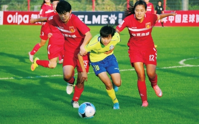 河南女足頭號射手婁佳惠(中)在比賽中 河南省球類中心供圖