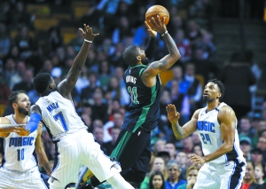 凱爾特人隊球員歐文(右二)在比賽中投籃。 新華社/美聯(lián)