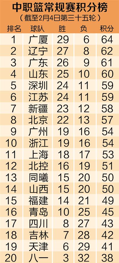 2017—2018賽季中國男籃職業(yè)聯(lián)賽(CBA)常規(guī)賽還剩3輪,暫居積分榜首位的浙江廣廈隊(duì)目前領(lǐng)先第二名遼寧隊(duì)兩個勝場,處在沖擊常規(guī)賽冠軍更有利的位置;而圍繞季后賽席位的爭奪更趨白熱化,3支球隊(duì)為最后兩個席位發(fā)起最后的沖刺。