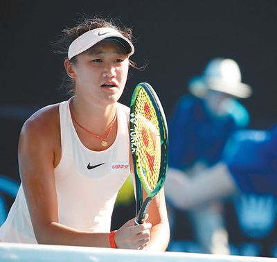 | 1月24日,王曦雨在澳網(wǎng)青少年女雙比賽中。 |