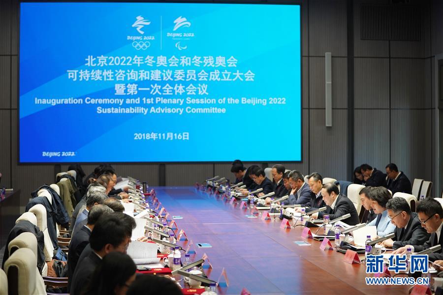 ↑11月16日,北京2022年冬奧會(huì)和冬殘奧會(huì)可持續(xù)性咨詢和建議委員會(huì)成立大會(huì)暨第一次全體會(huì)議在北京冬奧組委首鋼辦公區(qū)召開。 圖為大會(huì)現(xiàn)場(11月16日攝)。 新華社記者鞠煥宗攝