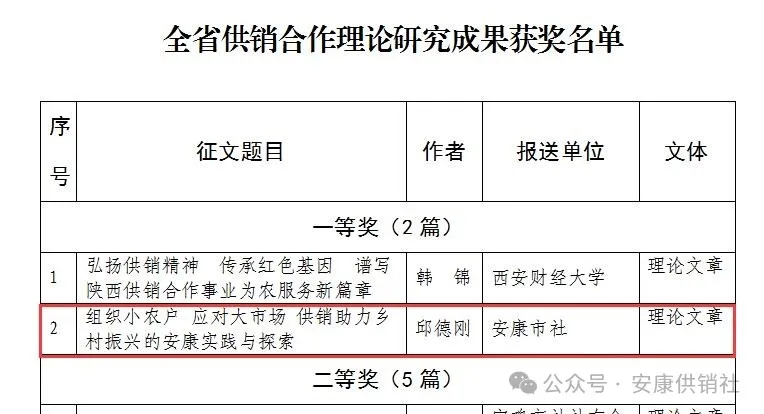 按:本文系安康市供銷(xiāo)合作社黨組書(shū)記、理事會(huì)主任邱德剛署名理論文章,立足供銷(xiāo)助力鄉(xiāng)村振興的安康實(shí)踐與探索,深入闡述了“組織小農(nóng)戶應(yīng)對(duì)大市場(chǎng)”的內(nèi)在邏輯,把群眾“組織起來(lái)”投身經(jīng)濟(jì)合作的實(shí)踐方法,在助力鄉(xiāng)村振興、推進(jìn)共同富裕實(shí)踐中探索出一條可復(fù)制可推廣的典型經(jīng)驗(yàn),其理論內(nèi)涵、實(shí)踐邏輯為在推進(jìn)鄉(xiāng)村振興中更好發(fā)揮供銷(xiāo)社的獨(dú)特優(yōu)勢(shì)和重要作用提供了有益參考,具有較強(qiáng)的指導(dǎo)意義。該文在中華全國(guó)供銷(xiāo)總社和陜西省供銷(xiāo)總社“薪火相傳七十載,砥礪奮進(jìn)新時(shí)代”主題征文中獲評(píng)“全省供銷(xiāo)合作理論研究成果一等獎(jiǎng)”。