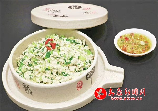 以石磨豆腐、小青菜為主要食材,制作時(shí)首先把豆腐捏碎,然后把青菜切成碎,在豆腐里面加入一個(gè)雞蛋,攪拌均勻。起鍋燒豬油下入蒜末炒香,倒入青菜、豆腐、炒熱,然后調(diào)味,在配上一小碟提前準(zhǔn)備好的大蒜辣椒,吃著既有豆腐的醇香,又有青菜的清淡,營(yíng)養(yǎng)價(jià)值也很較高。