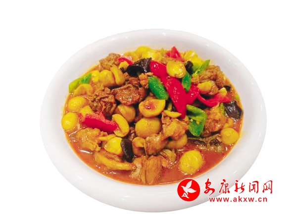 這道特色菜是把散養(yǎng)土雞洗凈剁成小塊,剝好板栗,在鍋里放菜籽油燒紅,加入少許干辣椒、花椒、豆豉炒香,再放入雞塊,大火煸炒變色,調(diào)入生抽、少許耗油、冰糖炒勻,汆入沒(méi)過(guò)雞塊的清水燒開(kāi),再放入板栗,火燜15—20分鐘,放入青紅椒調(diào)色,收汁裝盤。這道菜雞肉鮮美,板栗香甜,汁濃醇厚,色澤紅亮,真是吃貨們的口福。