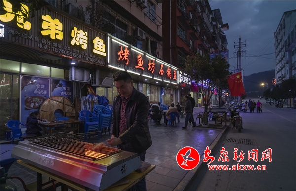 一座城市的溫度不僅是那矗立的山、靜深的水,更有煙火和人心。燈光球場(chǎng)散落的霓虹,文化路口推車(chē)的小販,夜燈下石泉烤魚(yú)的招牌,共同勾勒出石泉每一個(gè)最難將息的夜晚。