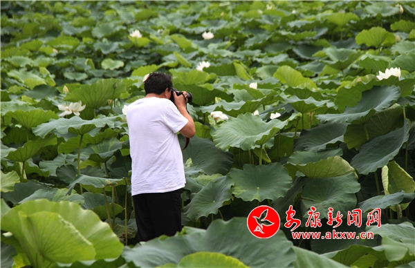 在荷塘間,游客們徜徉其中,賞花拍攝,成為雙乳鎮(zhèn)盛夏的一道亮麗風(fēng)景。密密層層的碧綠荷葉滾動(dòng)著晶瑩的水珠,一枝枝粉紅色、雪白色的荷花亭亭玉立,散發(fā)著淡淡的幽香。站在對(duì)面的山上極目遠(yuǎn)眺,大片的荷花在陽(yáng)光的照耀下顯得分外妖嬈。