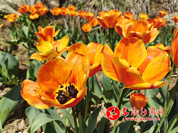 從遠(yuǎn)處望去,郁金香整整齊齊地排列著,陣陣微風(fēng)吹過(guò),搖曳生姿。湊近看,郁金香花一朵挨著一朵,花瓣重疊,鮮艷得像要滴出水來(lái)。時(shí)不時(shí)還有幾只蝴蝶蜜蜂縈繞在花間,享受著春天帶來(lái)的絲絲甜蜜。在暖陽(yáng)的照耀下,盛開(kāi)的花朵隨春風(fēng)搖曳,不同顏色、不同品種的郁金香呈現(xiàn)出了極佳的視覺(jué)效果,花叢中,游客三五結(jié)伴,賞花、拍照,享受繁花繞膝之美。