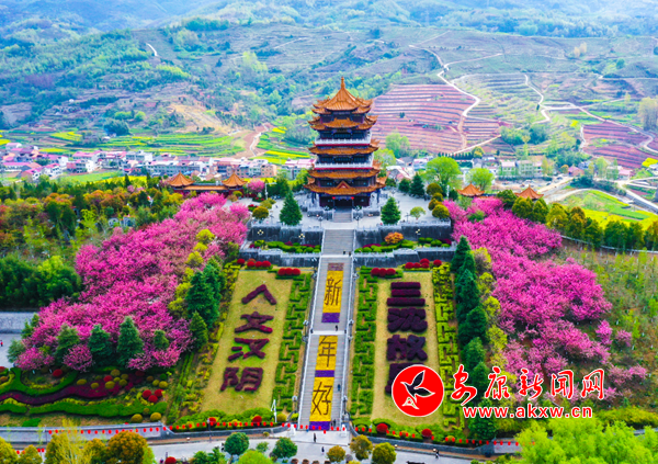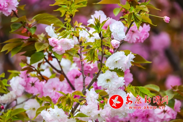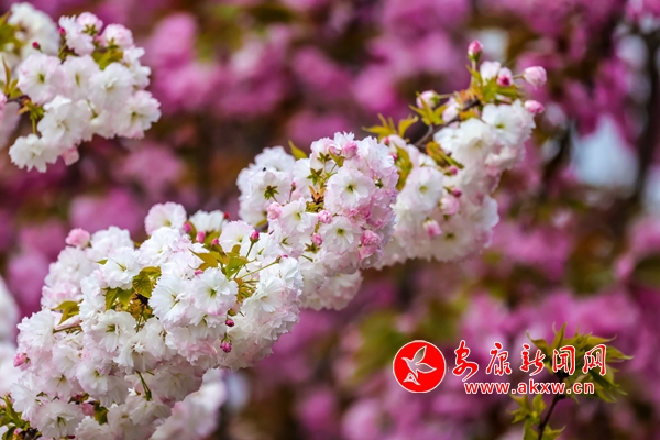 近日,在漢陰縣龍崗公園,成片櫻花競相開放,形成一片紅粉為主、白色點綴的爛漫花海,蔚為壯觀。EJ8安康新聞網(wǎng)