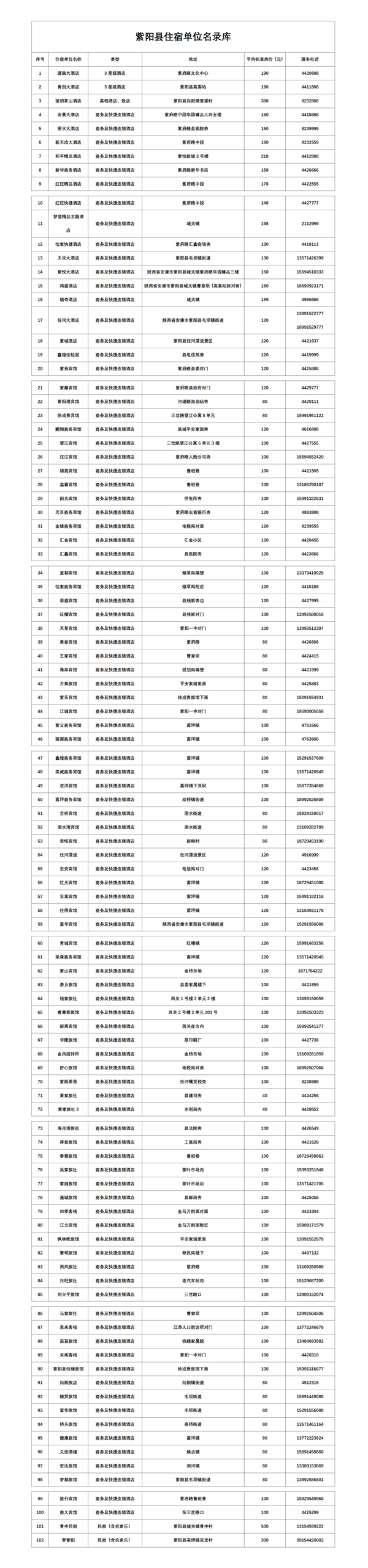 住宿單位名錄TXi安康新聞網(wǎng)
