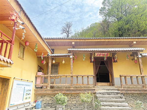 藍天、白云、清風、朗日、松林……一切慵懶舒適得剛剛好。一路盤繞,繞道幾彎桃紅柳綠、野花盛開的山道,掠過桃紅李白郁郁蔥蔥的樹林,周家院子便毫無征兆地映入眼簾。隔墻遠瞧,院內(nèi)房屋呈L形鋪展開來,房梁上懸掛的金黃色玉米穗、燦若紅霞的辣椒展示著農(nóng)家物產(chǎn)豐饒的鄉(xiāng)野特色,犁彎、犁脖、犁鏵,述說著院子主人的勤勞與殷實。而一串串醒目的大紅燈籠,展示著主人的幸福生活和對未來的美好憧憬。
