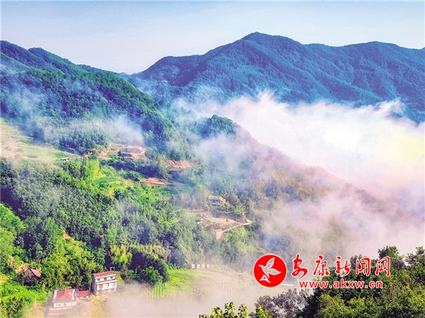 時暑不出門,亦有賓客至。時值大暑,赤日炎炎,山道彎彎,遠(yuǎn)處云霧繚繞,近處山林蓊郁,這里是群山環(huán)抱的壩河!